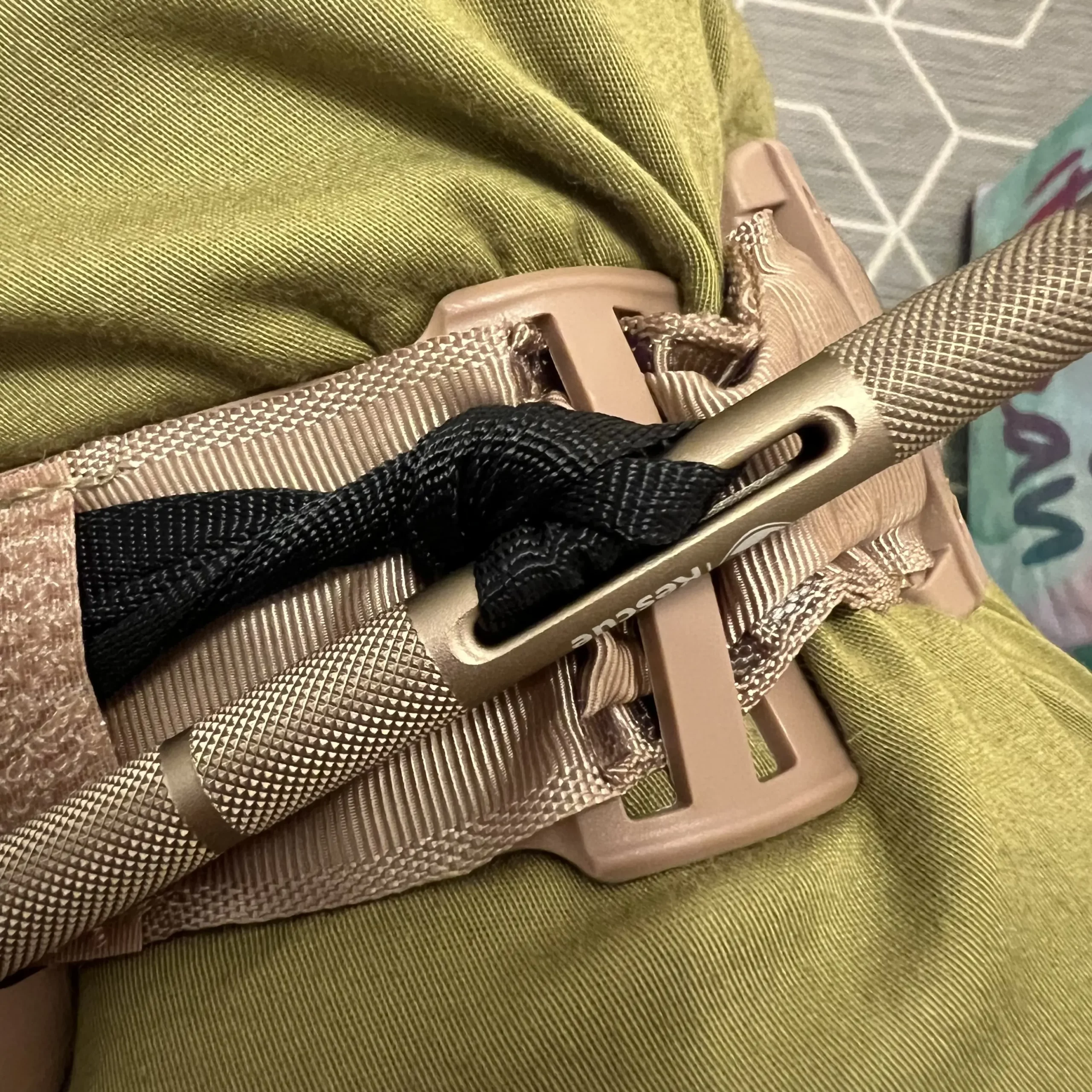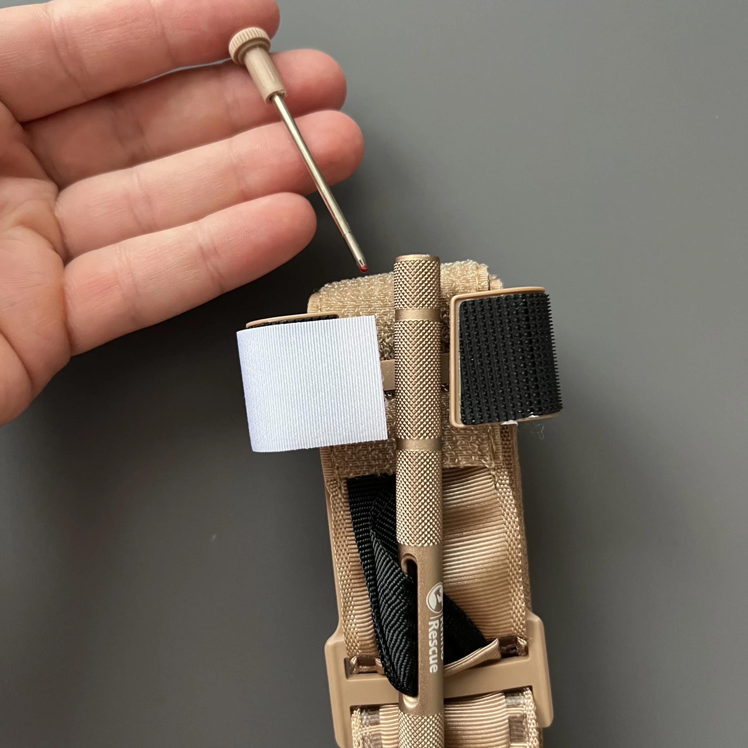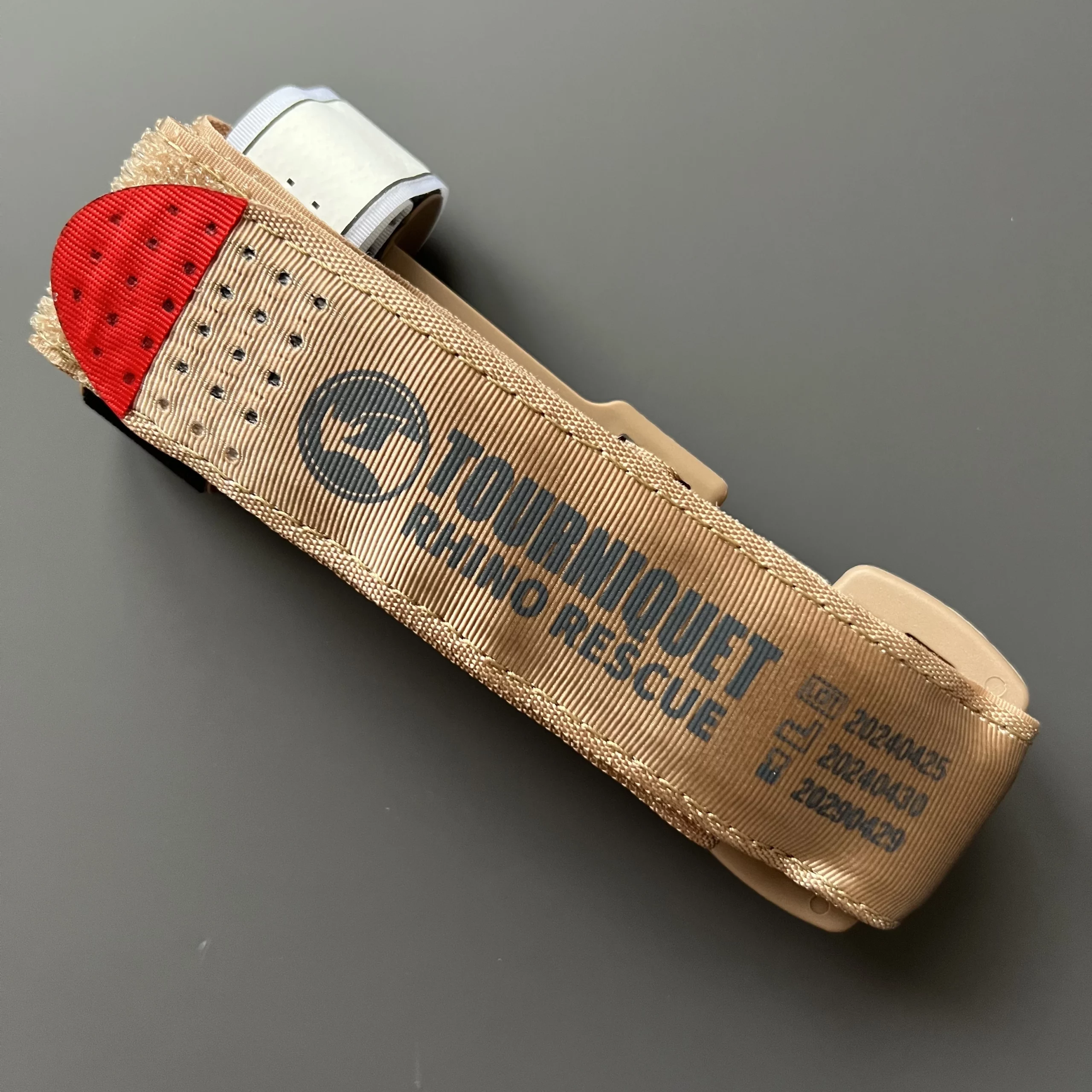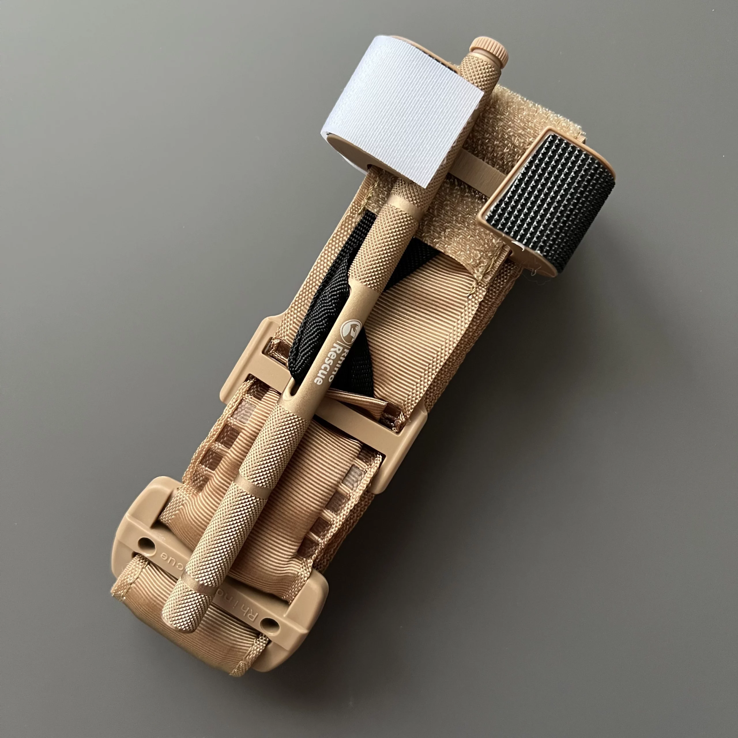 Turniket Rhino na první pohled vypadá podobně kvalitně jako kterýkoli jiný osvědčený turniket doporučený CoTCCC. Ovšem je tomu tak jen na první pohled. Plastová spona ve tvaru písmene „C“, do které se zajišťuje vratidlo, má měkčí plast než třeba CAT.